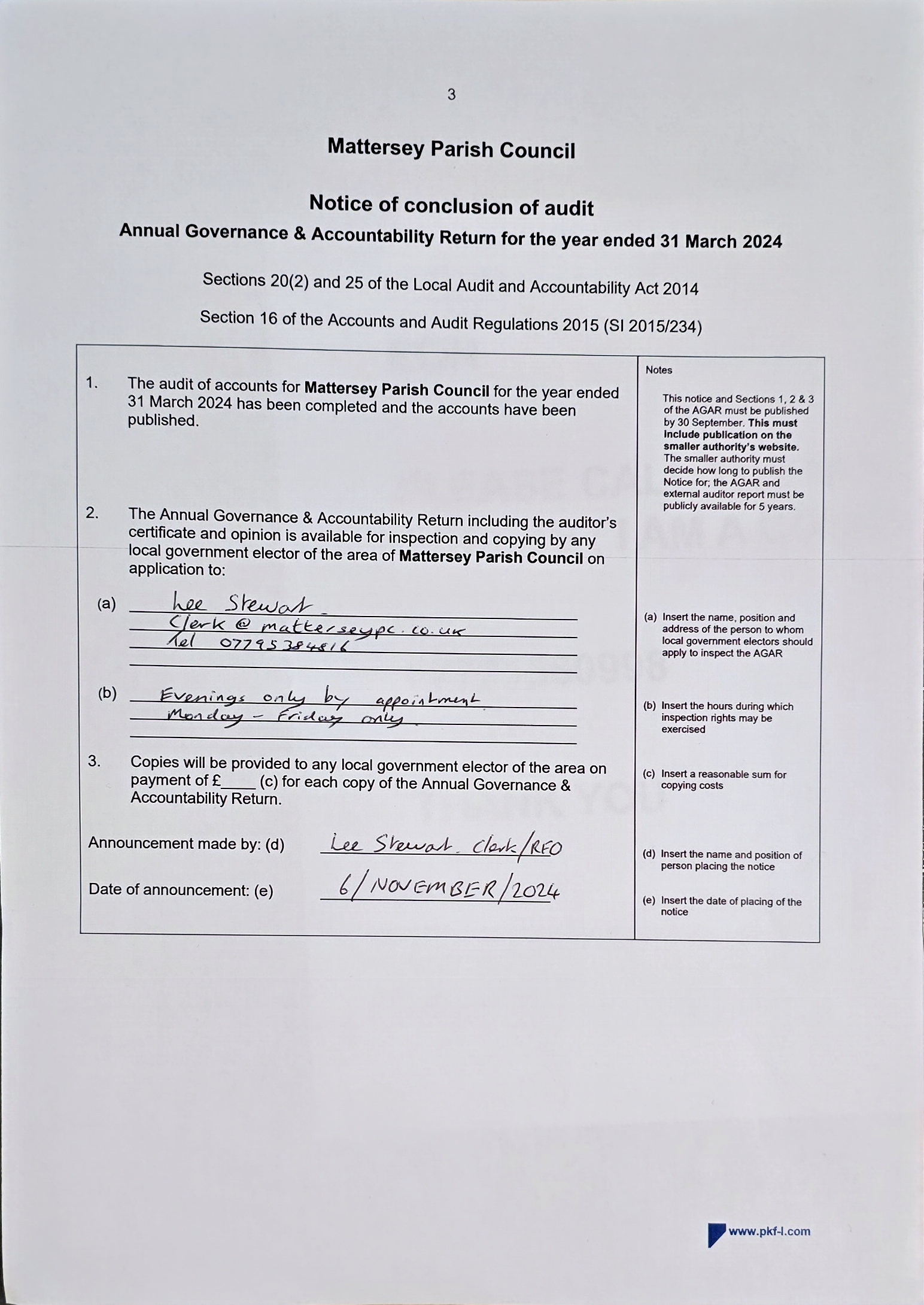 Annual Governance & Accounting Statements signed